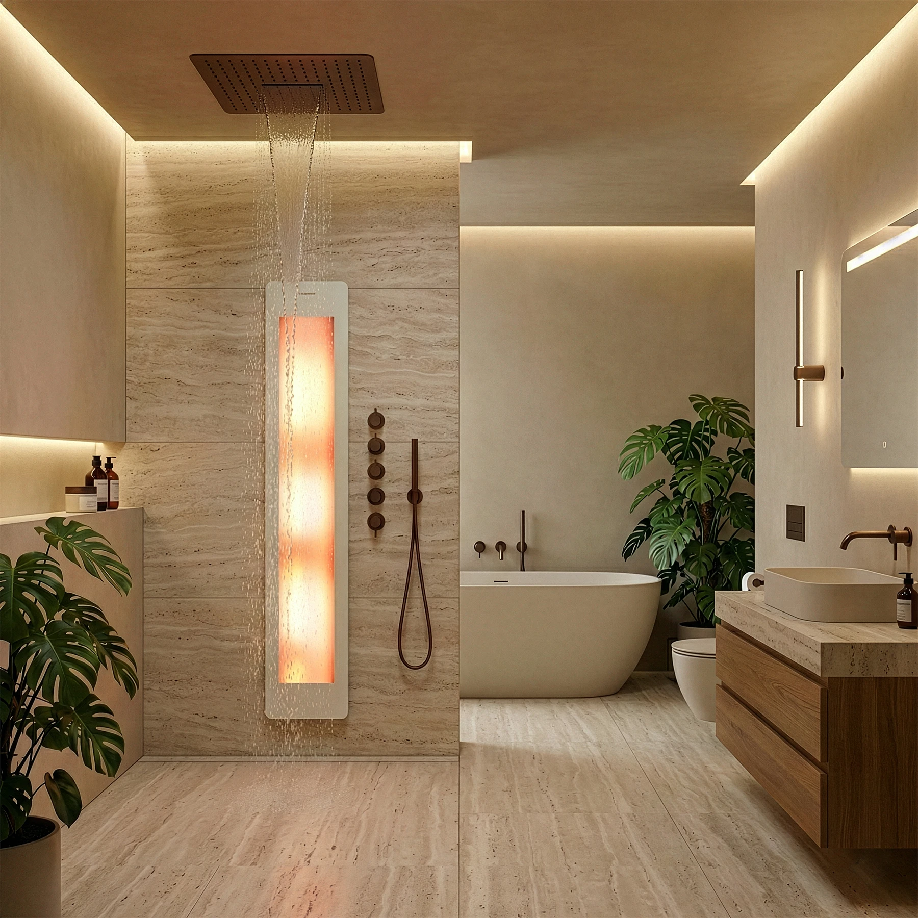 Multi-Function Sensory Showers: From Atomized Mist, through Cascade Waterfalls, to Body Jets and Chromotherapy, transform your shower into a multi-sensory event, align your circadian rhythm and boost your mood.